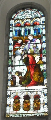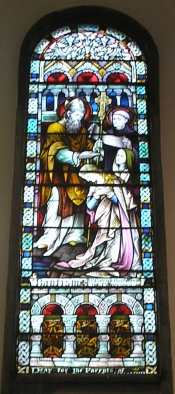 Over the High Altar are seven windows of stained glass representing the Seven Sacraments. They are;