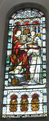 The East Chapel is dedicated to the Blessed Virgin Mary. The window, in three panels, depicts the Annunciation – I am the handmaid of the Lord. A copy of Raphael’s Madonna and Child hangs on the side wall. Let us pray through the intercession of Mary that we will be listeners to God’s Word and that we will put it into practise in our daily lives.